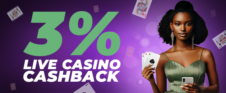 Get 3% regular weekly cashback by playing LIVE Casino Games from ANY provider!